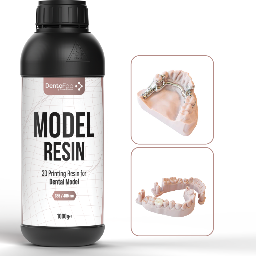 PowerResins Model resin is a ceramic-based 3D-printing dental model resin with exceptional dimensional accuracy, a low shrinkage rate, and a unique texture and color. Now, printing fixed or removable dental prosthetics, crown and bridge removable die models, implant analog models, wax-up models, and thermoforming models orthodontic aligners is easy.