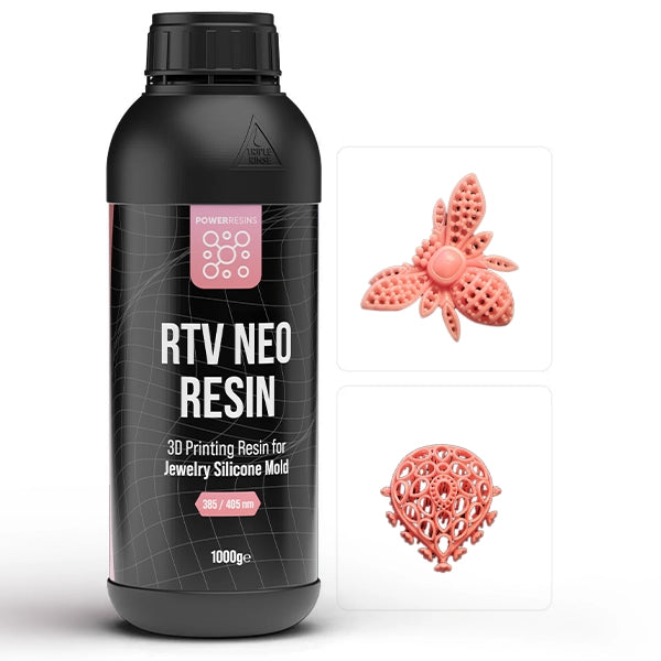 PowerResins RTV Neo resin is a special 3d printer resin that is designed for taking RTV (Room Temperatur Vulcanized) liquid silicone molds.